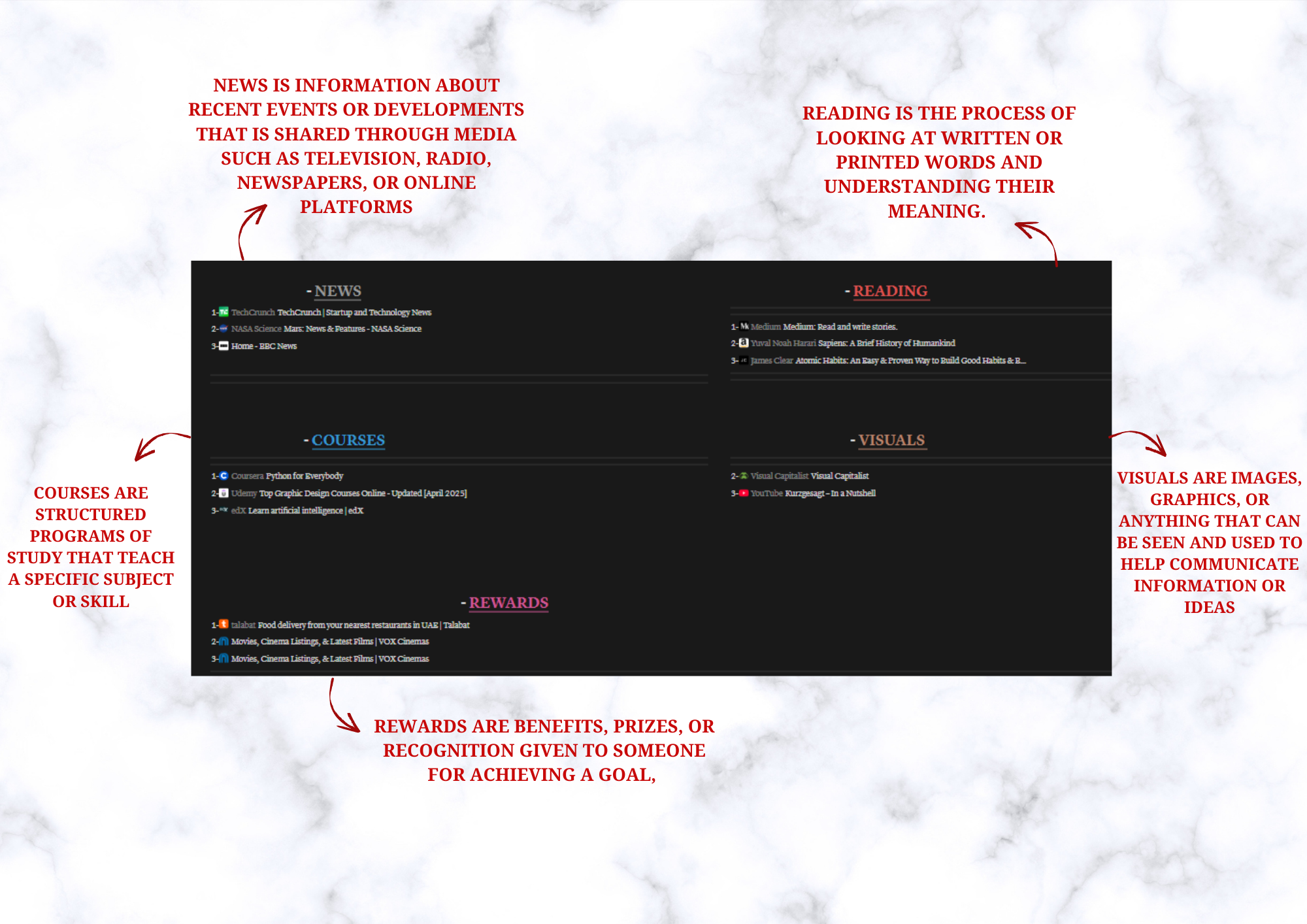 - NEWS: Information about recent events shared through media platforms including television, radio, newspapers and online sources